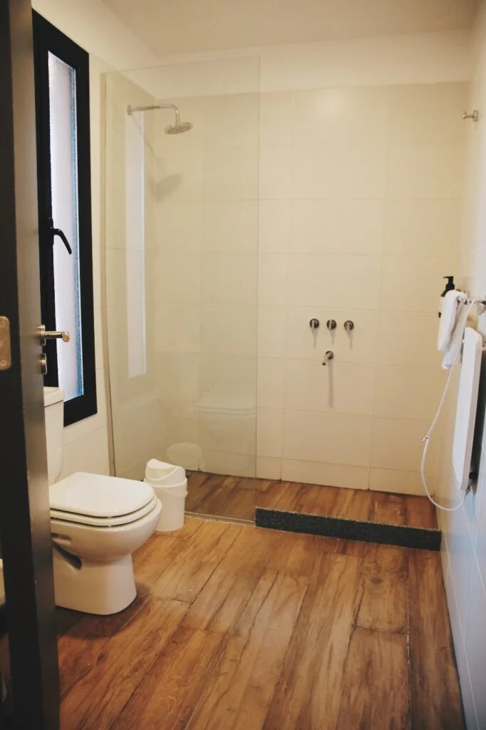 Son doce departamentos de 50 m², cada uno con dos cuartos, vestidor, baño y galería. Los volúmenes se van escalonando entre sí para captar mejor el sol y las vistas. En el exterior se combinan hormigón armado visto, baldosones de plaza, madera natural y chapa gris grafito, logrando una presencia sobria y elegante que dialoga con el entorno construido. En el interior, el protagonismo lo tienen el blanco y la madera, una dupla cálida y al mismo tiempo resistente, pensada para soportar el uso intensivo.