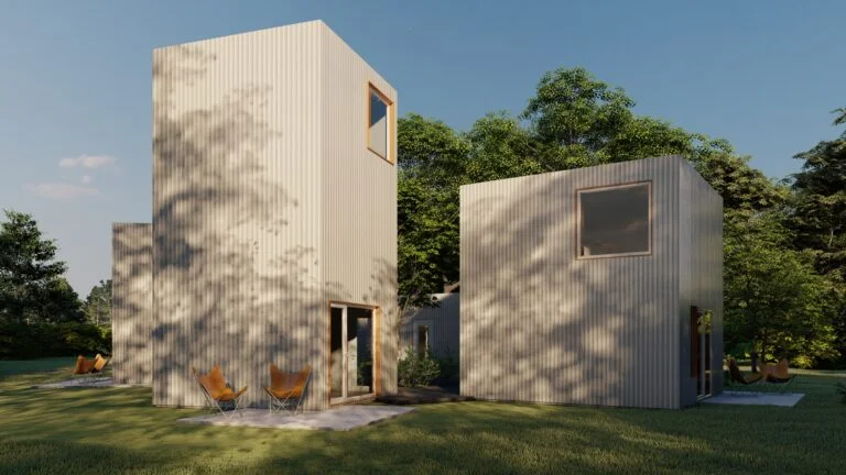 Pensado para un entorno turístico de estadías breves, este conjunto de cabañas propone una experiencia versátil y dinámica para familias de distintas conformaciones. El proyecto se compone de cuatro unidades con tipologías diferenciadas: dos desarrolladas en dúplex y dos en una sola planta, ofreciendo variedad en cada visita.
