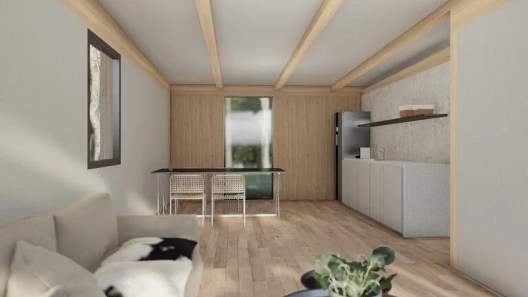 Una propuesta eficiente que optimiza el uso del espacio y promueve el confort, ideal para escapadas en pareja o en familia.